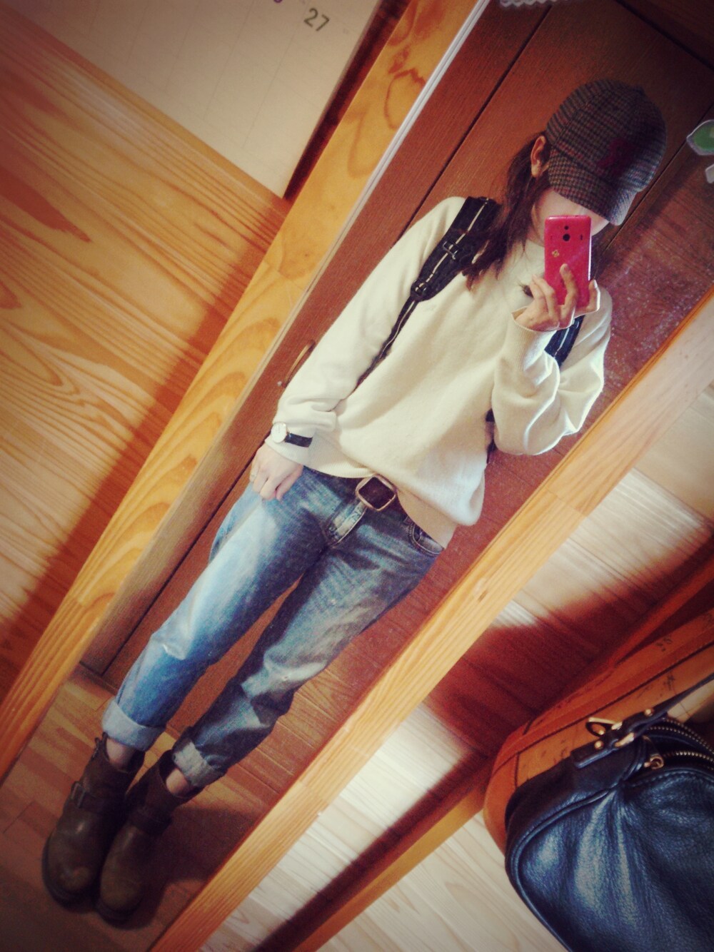 今日のコーデです🙆 シンプルカジュアルー♡ 小物を茶でまとめようとしたけど、時計とリュックが黒になっちまったぁ! まぁ、良しとしよう🙆