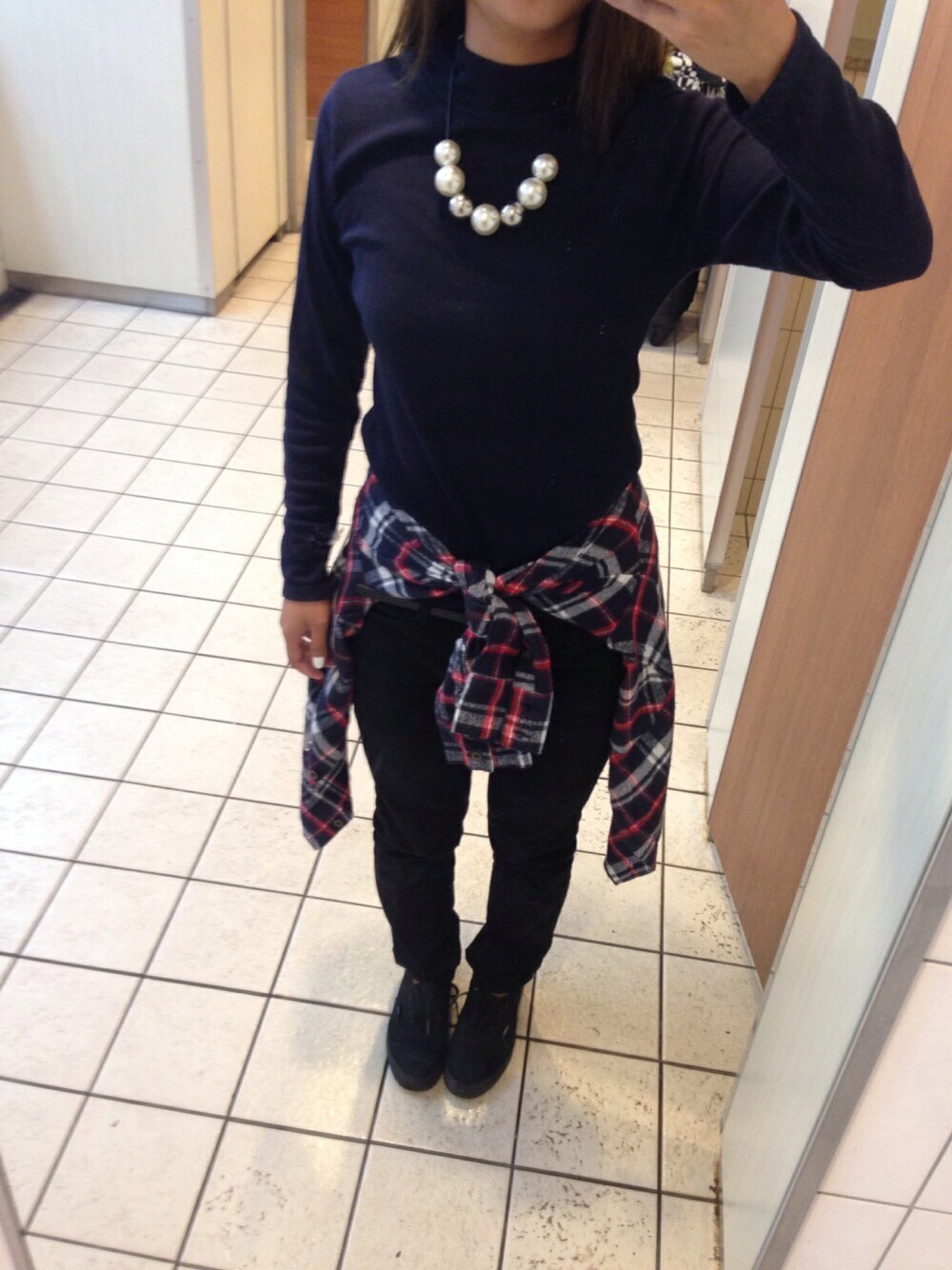 トップス:OZOC スキニー:GU チェックシャツ::EMS EXCITE くつ:VANS ベルト:しまむら ネックレス:SpRay