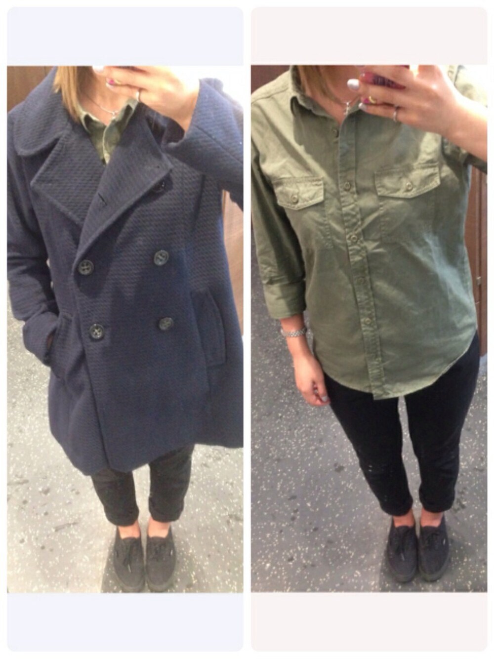 コート:E hyphen world gallery シャツ:NAVANA スキニー:GU スニーカー:VANS