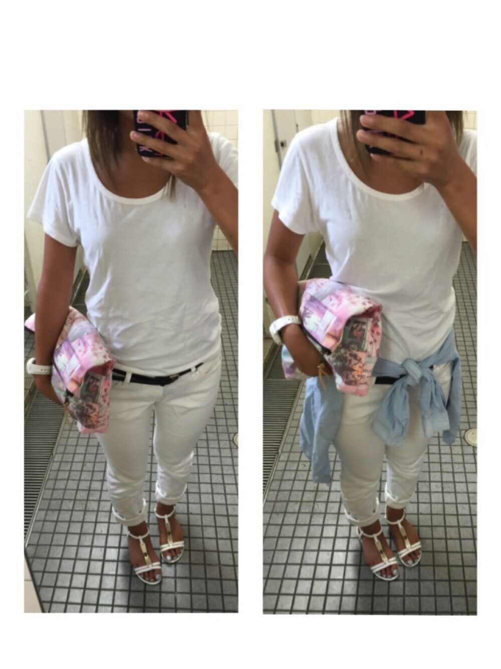 Tシャツ:MOUSSY スキニー:GU シャツ:H&M サンダル:Feminine Cafe クラッチバッグ:TO THE SEA 時計:Baby-G