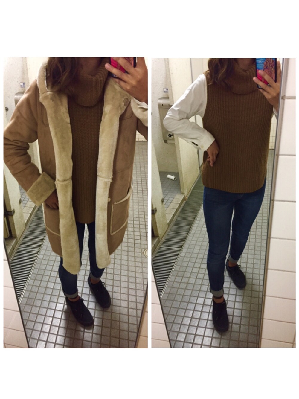 knit:AS KNOW AS Pinky shirt:chocol raffine fobe skinny:UNIQLO outer:SEVENDAYS=SUNDAY シューズ:VANS
