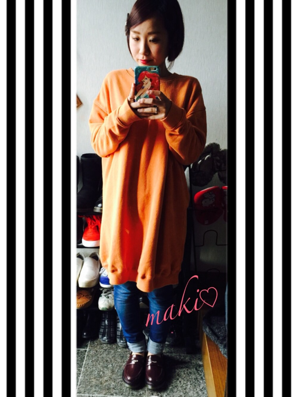 初投稿😁🌟 いつもは柄を取り入れたがりますが シンプル、かつ女の子らしい スタイルにしてみました💖 オレンジがまたいい色😍✨ 春を感じさせてくれます🌸✨