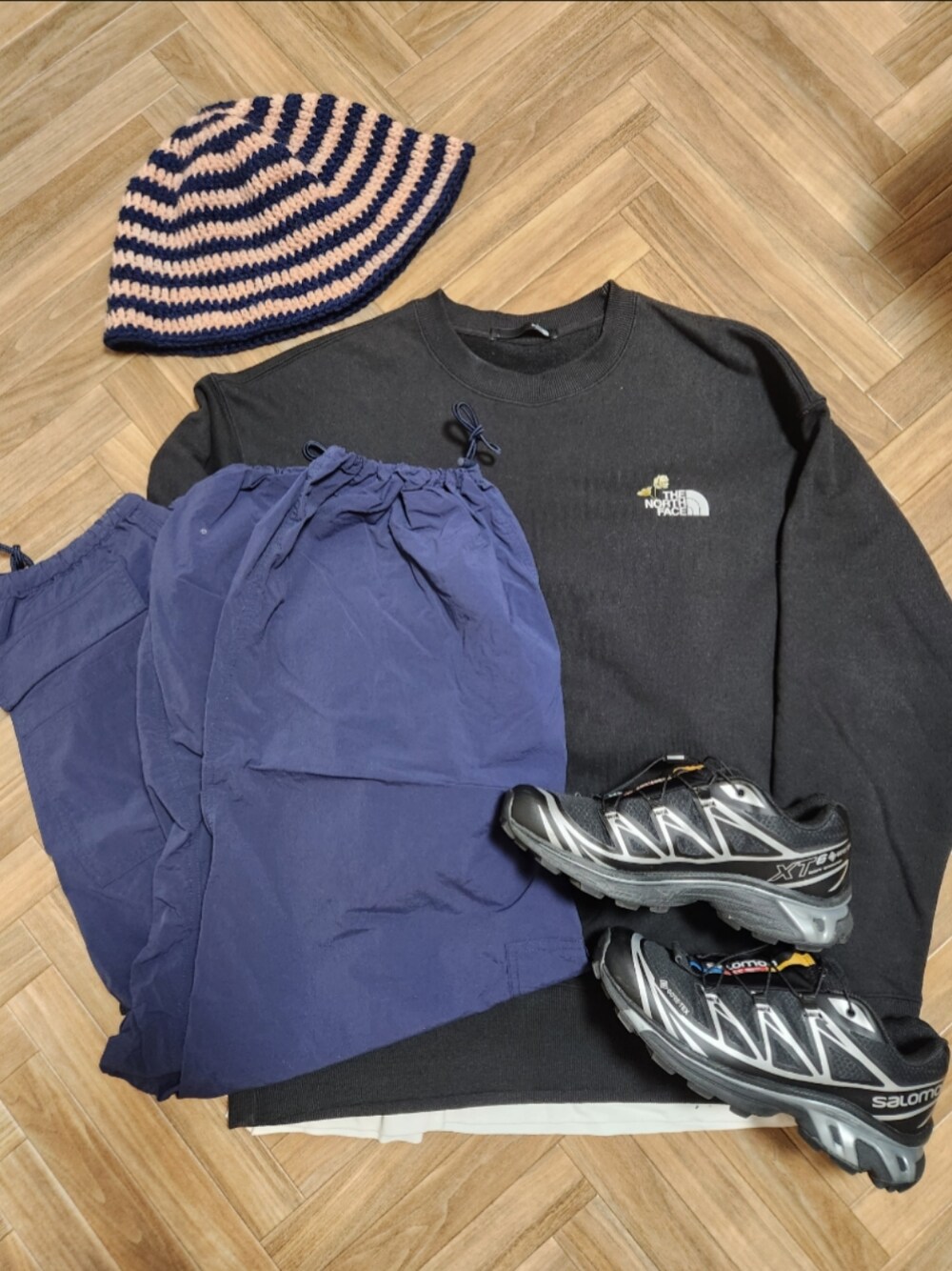 前にも載せたことあるかも?! ってぐらい気に入ってる組み合わせ笑 オールブラックコーデが好きだけど ネイビーで崩すのも大好き。 そこにピンクの差し色がめっちゃ かわいい🩷