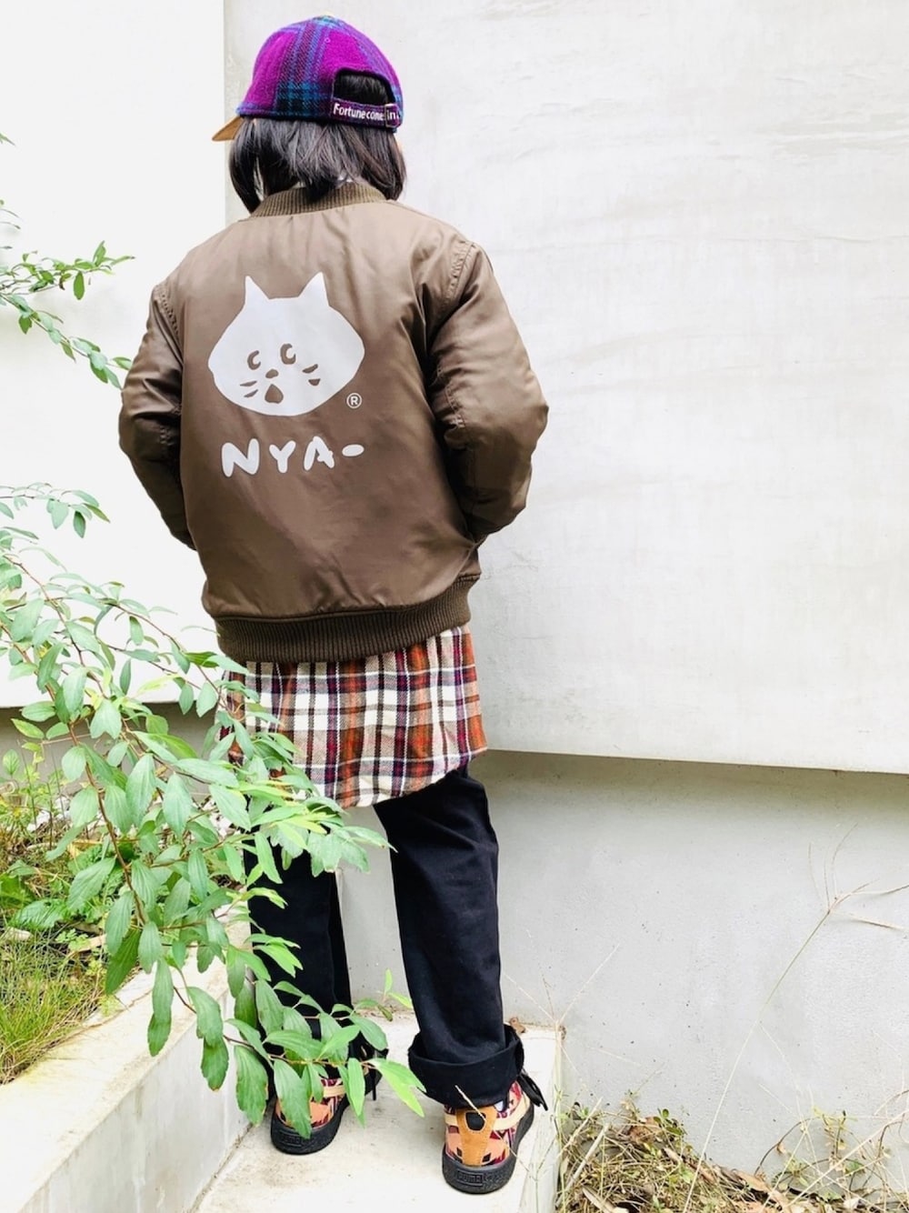 にゃーのミリタリージャケット 大人っぽい渋いカラーに 大きな可愛いバックプリントの ギャップがたまりません♡ しかも、リフレクター素材だから、 暗い所でも反射して安心! @nya_shop_official
