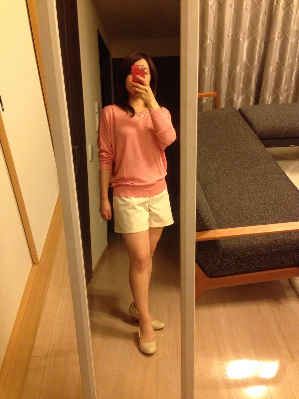 大人☆サクラ色コーデ!! ピンクのドルマンは、二の腕ほっそり効果ありです♫白のショーパンと合わせれば、お花見にもピッタリのコーデの完成!!