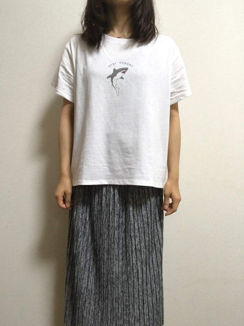 サメのTシャツにしたので、スカートもサメっぽさを少し意識して笑。