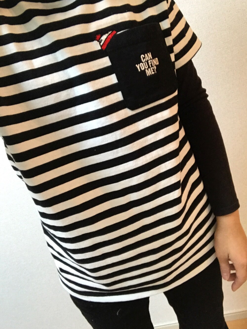 ウォーリーTシャツ☆寒いので長袖を下に着ました。もちろんコートも!モノトーンコーデ。