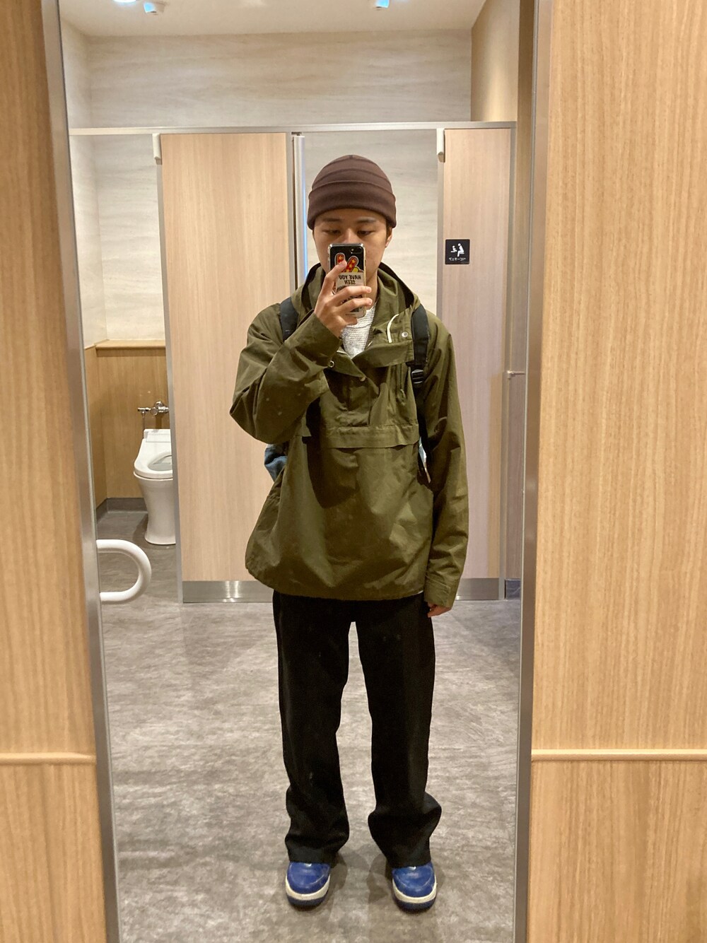 上下落ち着いた印象の色味の組み合わせなので、足元やインナーで色物や柄物をチラ見せすることでスタイリングに深みを持たせることが出来ます✨ 正直キャップは要らないのですが、髪型に飽きると被りたくなります🤣