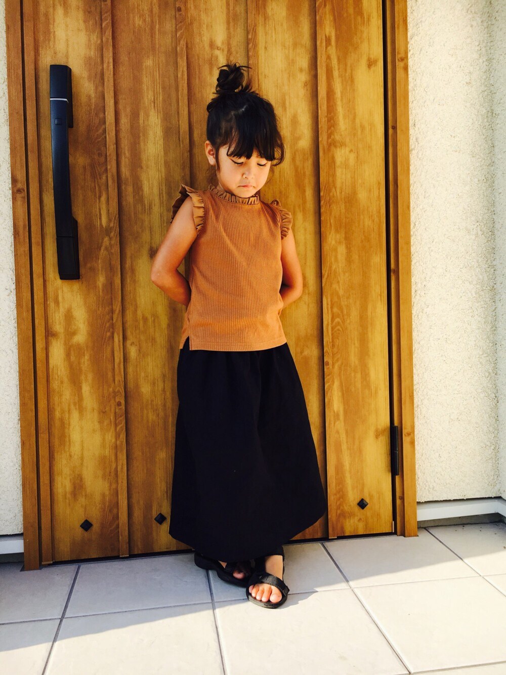 プティマインのトップスに一目惚れ♡ ハンドメイドの墨黒ロングスカートに合わせました(^-^)娘もお気に入りスタイル♪