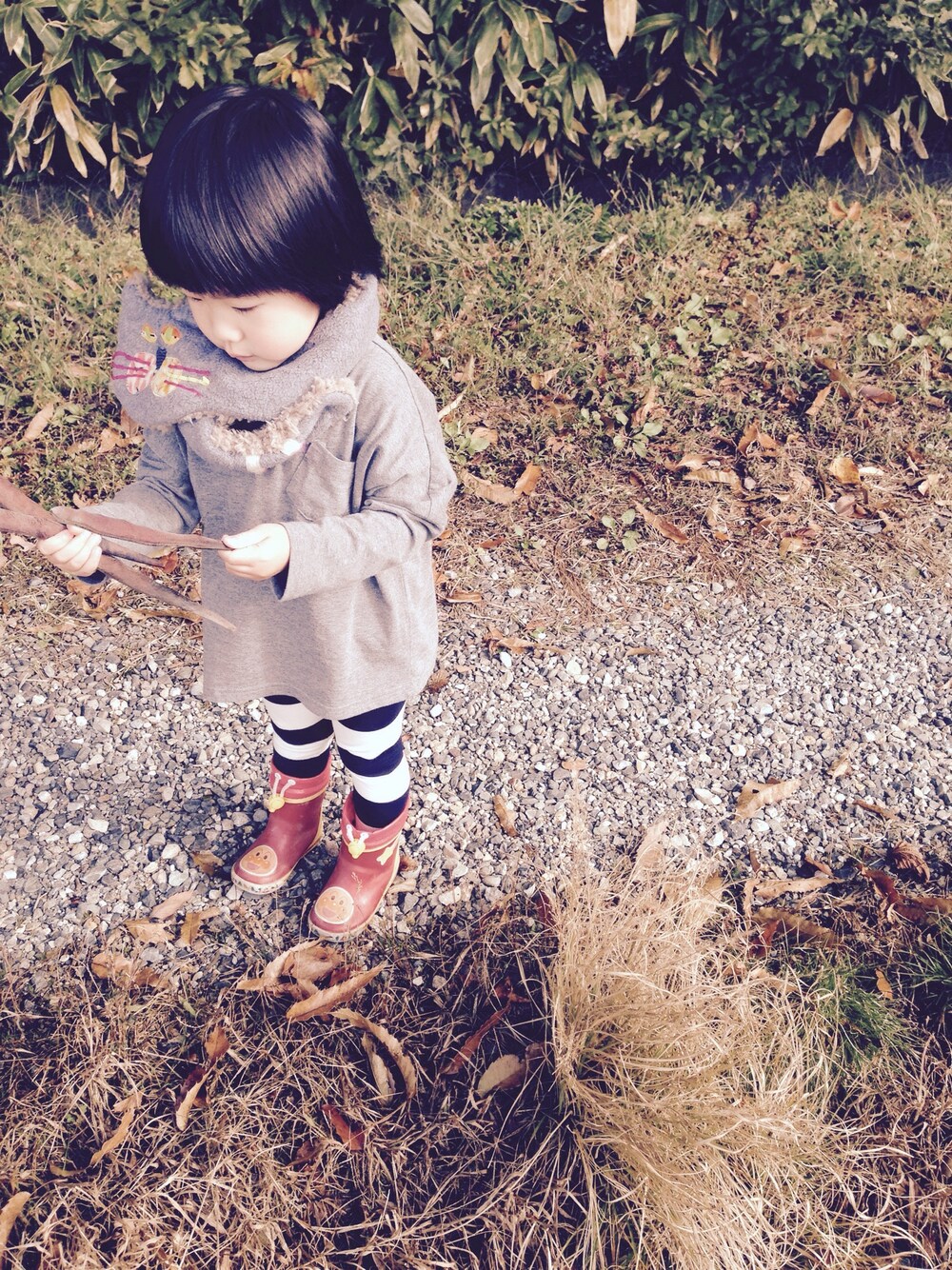 マフラー:Handmade Labo トップス:韓国子供服 長靴:アンパンマン♡