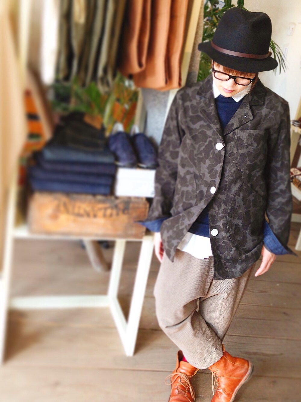 今日のかあちゃん。 メンズライクに。 カバーオールの袖裏のデニムがツボ♡