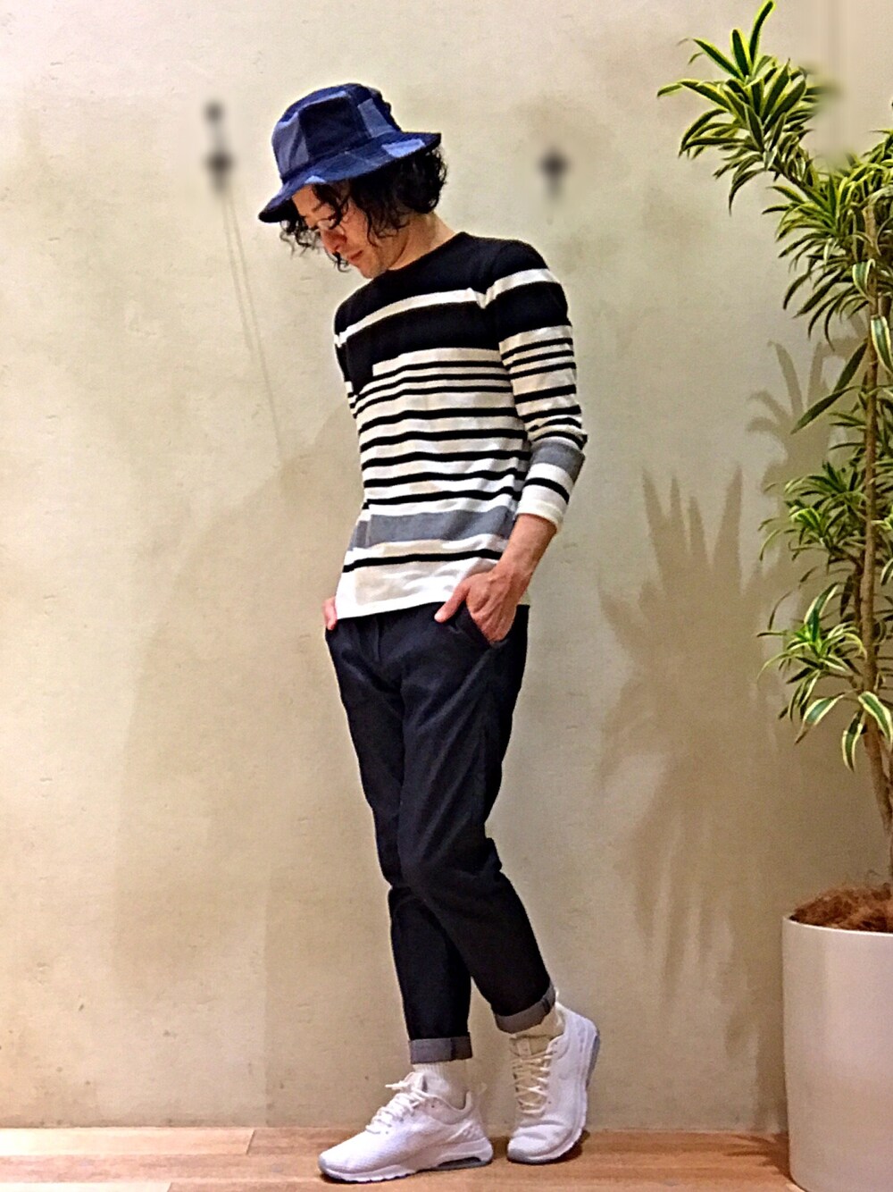 皆様、お久しぶりです😊 最近は仕事に追われておりました😭 久しぶりのお休みなのでお花見に行きたいと思っております✌︎ 東京の方ではそろそろ見頃を終えそうですが、こちらは今が満開でございます🌸 今日のコーデはデニムパッチワークバケットハットとオリジナルのボーダーカットソーで春らしく爽やかに🎵ホワイトのエアマックスはメッシュ加工なので履き心地も爽やかで最高ですね👟✨ いつもいいね、saveありがとうございます😊 フォロワーの皆様今後とも宜しくお願い致します🙇✨
