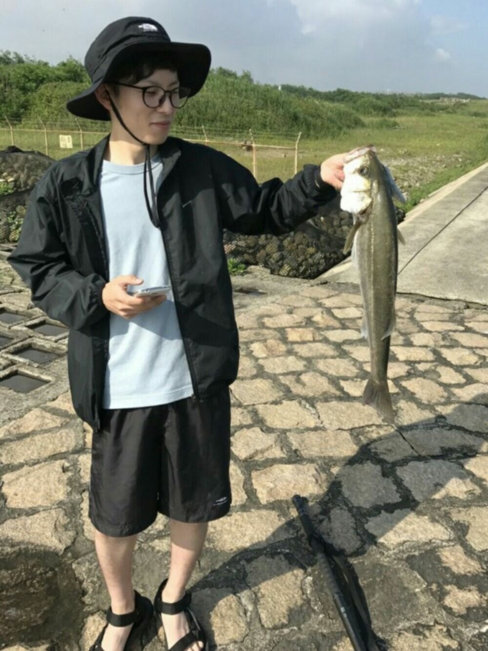 ハッシュタグ通りです。 おしゃれな皆さんの前で大変恐縮ですがシーバスが釣れたことでテンションがあがり投稿させてもらいました! # 釣りはハーフパンツで行くもんじゃないw