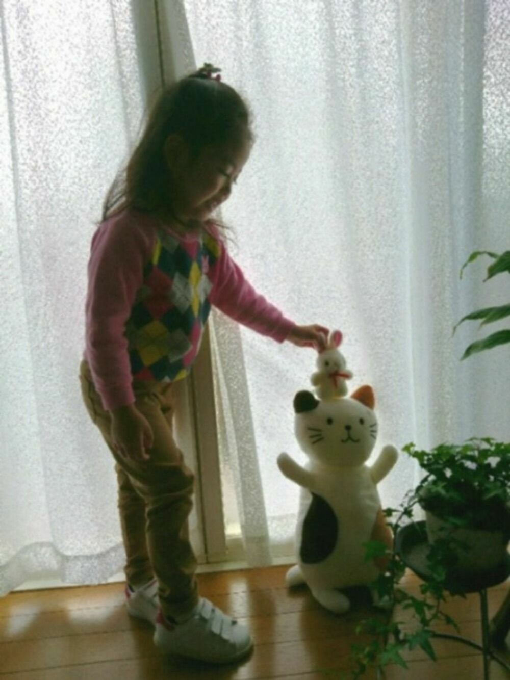 今日は「娘が選んだコーデ」です。 気分的に「うさぎが付いた服」を着ようと決めてたみたいです❤️ たくさんのぬいぐるみの仲間も撮影デビューしてるそうです(笑)(笑)