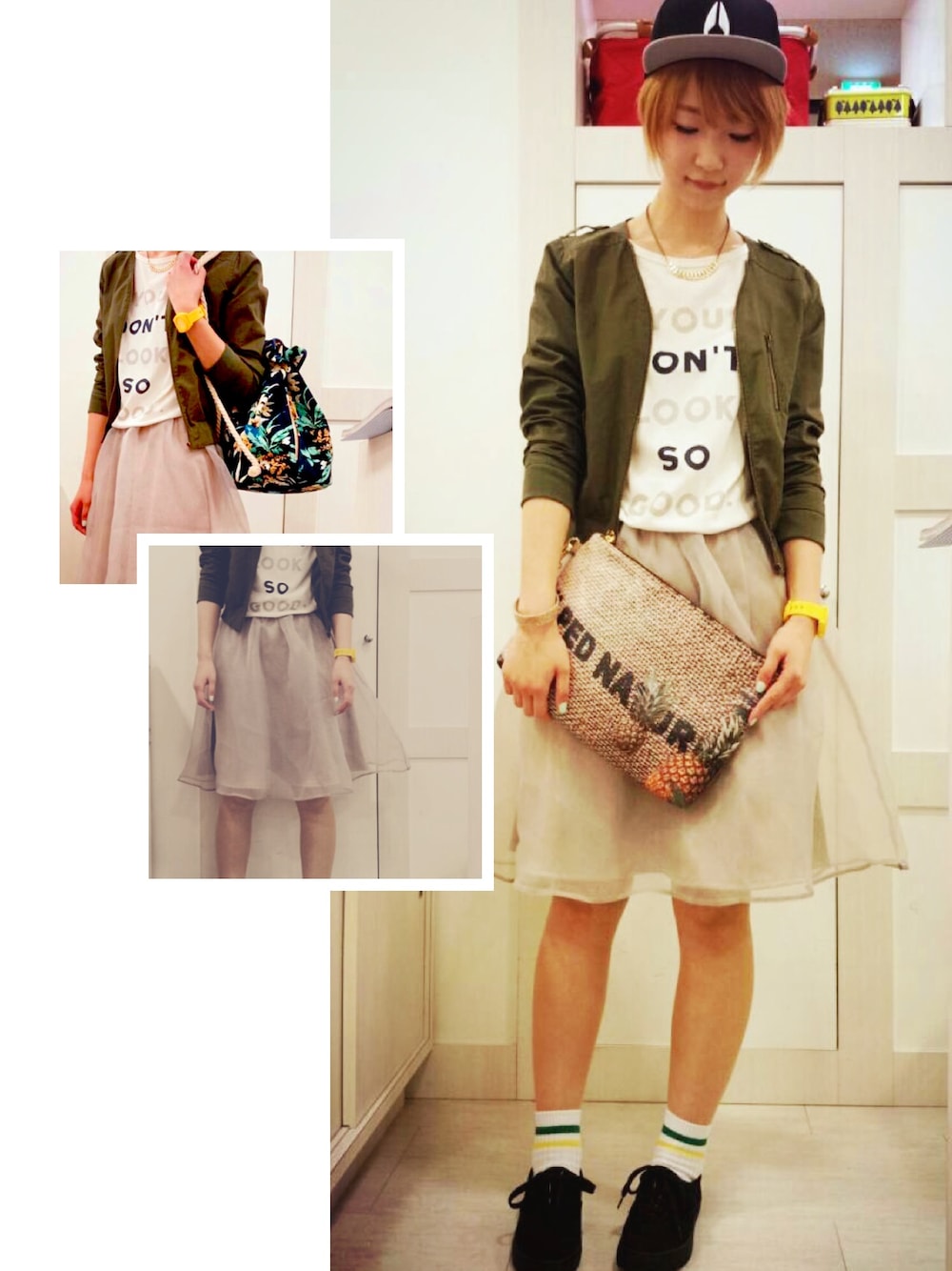 ブルゾン・Tシャツ・スニーカー:PEGEBOY スカート:more than words キャップ・時計:NIXON またまたお久しぶりです!今日はお店で取り扱いしてるtutuannaのソックスでポップを作る!とゆうことでモデルしてきました! 雑貨屋やけど色々なジャンルの取り扱いがあるのでせっかくなら!と全身春の新作コーデです♡ 飛騨はまだ肌寒いのでこのくらいのアウター着てないとやばいです。凍えます。足りないくらいです。笑はやく春来ないかなー! とゆうことですっごく楽しんで写真撮りました笑 ショートヘアだけどスカート履きたい願望も叶って満足です♡(´Д` ) 小窓はスカート履いたテンションでくるっふわってしてみたかったやつです笑