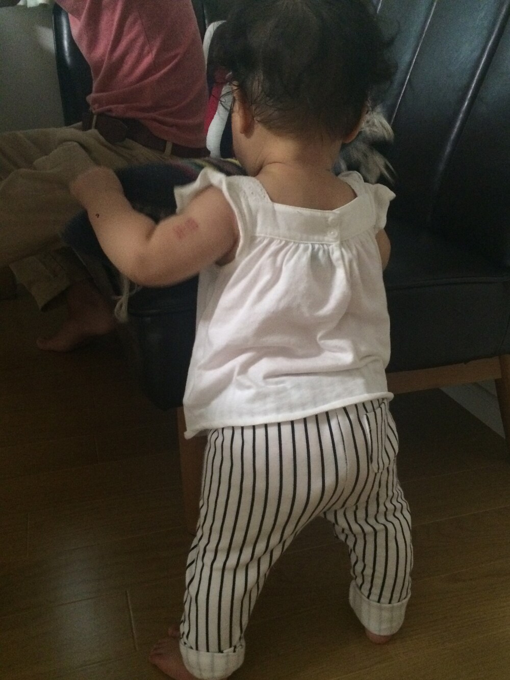 20150718 新入りのスパッツ♡ ストライプがつぼーー💕 奥にいる👨🏻に遊んでと迫っているもののスルーされる👶🏻