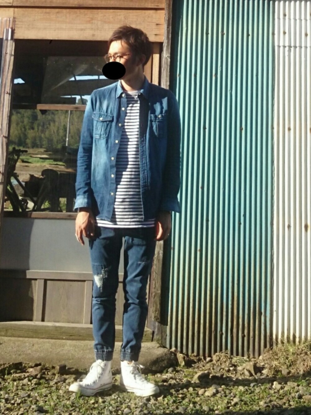こんばんは‼ デニムオンデニム‼ 丸メガネ。 暑かった… いつもイイねありがとうございます。 それでわ‼