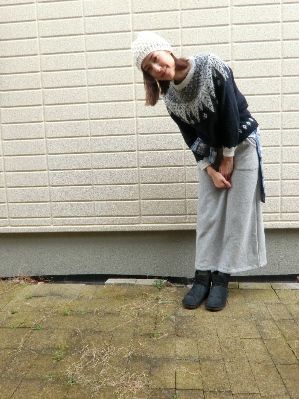 こんばんは どうしてかがんでるかと言うと なんだか丁度良くて… 最近体力作りにはまっていて その時はこういう格好でウォーキングしてます スカートは裏起毛なので👍👍👍 これにマスクとサングラス