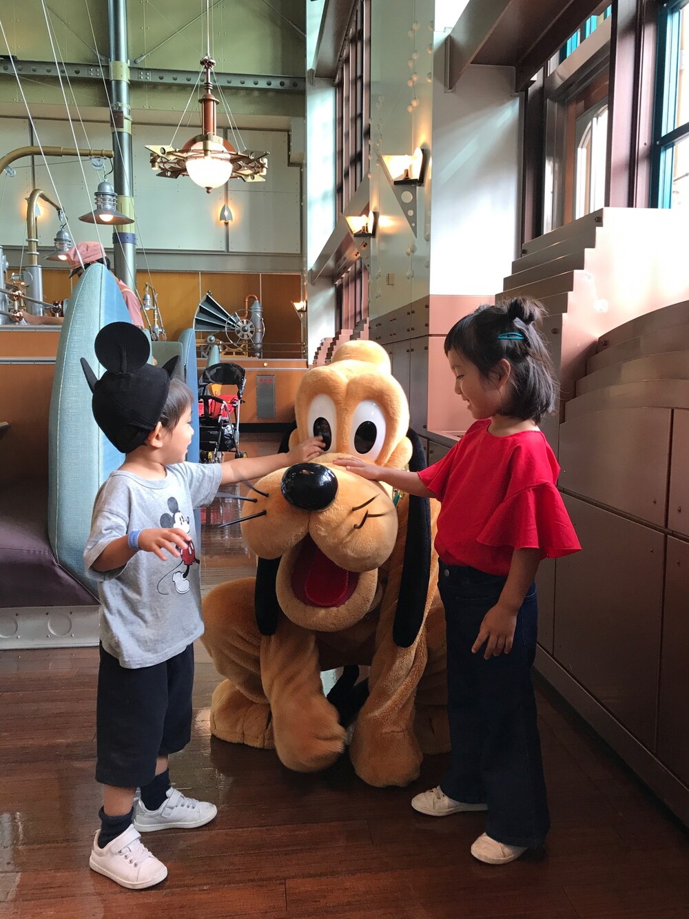 ☺︎だけ、アイスをこぼしたのでTシャツお着替え😅 来月の沖縄用に買った赤いトップスやっぱりかわいい♡