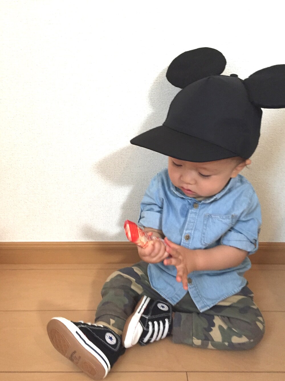 ミッキー帽子が目立ち過ぎてるよね😂www 今週末のディズニーデビューに向けて、帽子作っちゃいました🏰🐭✨ と言っても、100均の黒キャップにフェルトで作った耳を縫い付けただけ😂💦 大人用なので大きいです…🙄 まぁいっか😂😂 ミッキーの衣装はネットでポチったので着せるの楽しみ😍❤️ 撮影していたらくしゃみの瞬間撮れたので小窓に載せておきます😂✨ 今日は一日中雨みたいなので、午後から支援センター行ってこよ🙋🏻 見ていただきありがとうございます🙏🏻✨ ♡、セーブ、フォローとっても嬉しいです👶🏼💓