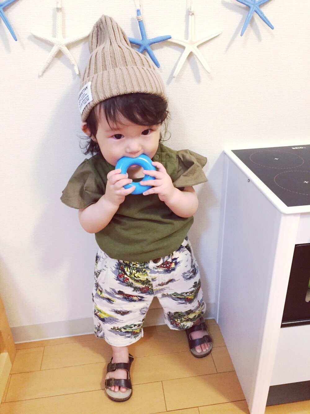 今日はアロハフェス☺︎ 実は昨晩、本日がアロハフェスということを知りました!(遅くまで起きていたRanさんを着替えさせて撮影開始…そのまま間違えてupしちゃうという、失態をしました。見た人いるかな?笑) フェスと聞いたら参加せずにはいられない母でございます!笑 うちにハワイで買ったお兄ちゃんのアロハのセットアップがあったので着せてみました…が、 合わせる帽子がないっ!!(゚д゚lll) おまけに、Ranさん完全に男の子ーーー! ということで、小窓にとどめておきます♡ 全然アロハ感がなくなってしまいましたが、 参加させてくださーーい(つД`)ノ