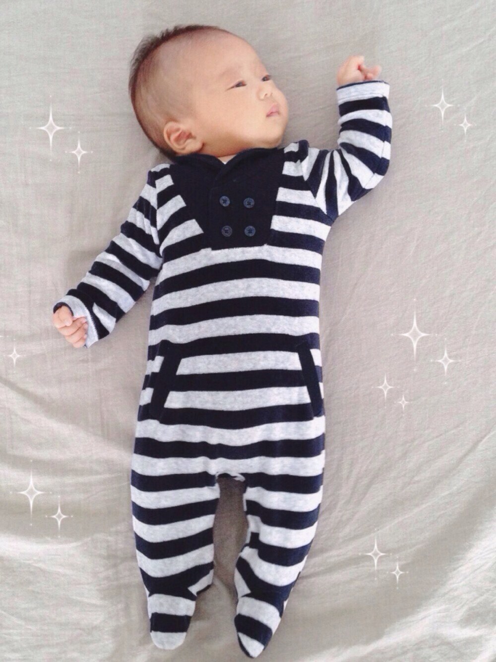 今日もお気に入りの、招き猫ポーズ✨ 足までスッポリのカバーオールはベロア素材で、あったかくて活躍中〜(^-^) まだまだチビッコなので、お洋服のサイズがあんまりなくてオシャレ難しいです〜(>_<) みなさんのコーデ見て勉強中です〜❗️