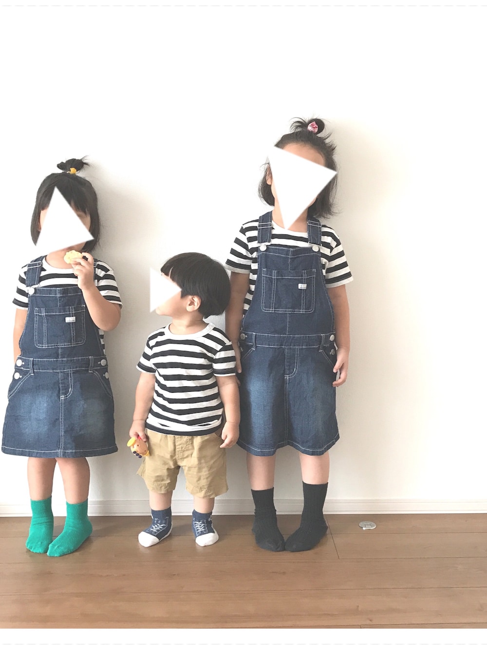 しましま3姉弟ʕ•̫͡•ʕ•̫͡•ʔ•̫͡•ʔ Tシャツ…無印良品 サロペット…ライトオン インスタ…_hiroe_m_ ☺︎良かったら見てみてください☺︎