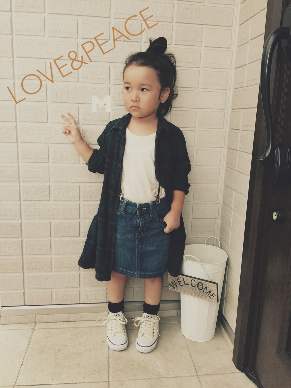 今日は台風で幼稚園がお休みになりました。 長い1日になりそうです…😑 よく見たら、スカートのチャックあいてる🙈💦 ラブ&ピース