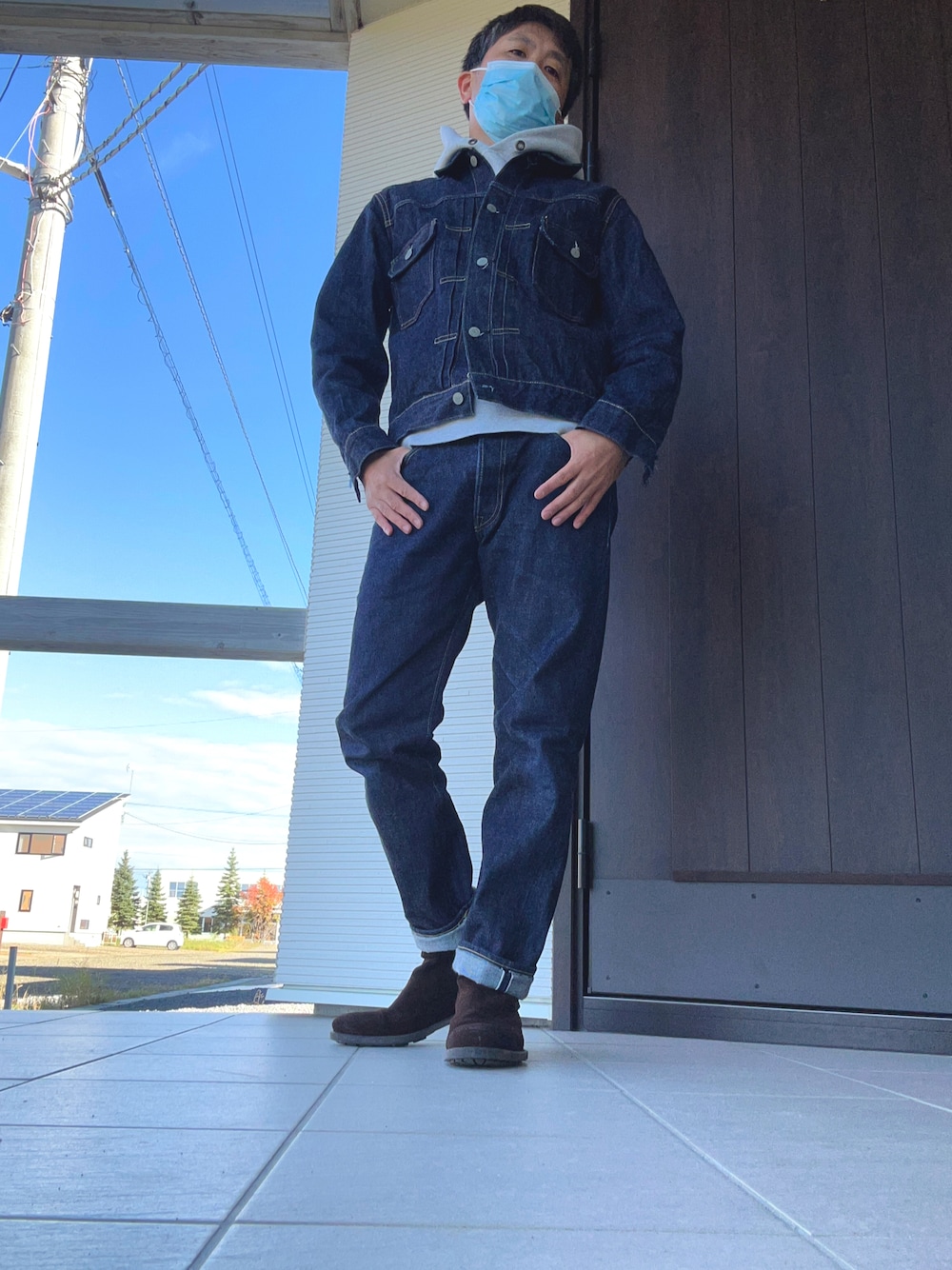 いつもイイねやフォロー、お気に入りに登録ありがとうございます😊 今日はチャンピオンのリバースウィーブのパーカーにシュガーケーンでデニムオンデニムにしましたー。