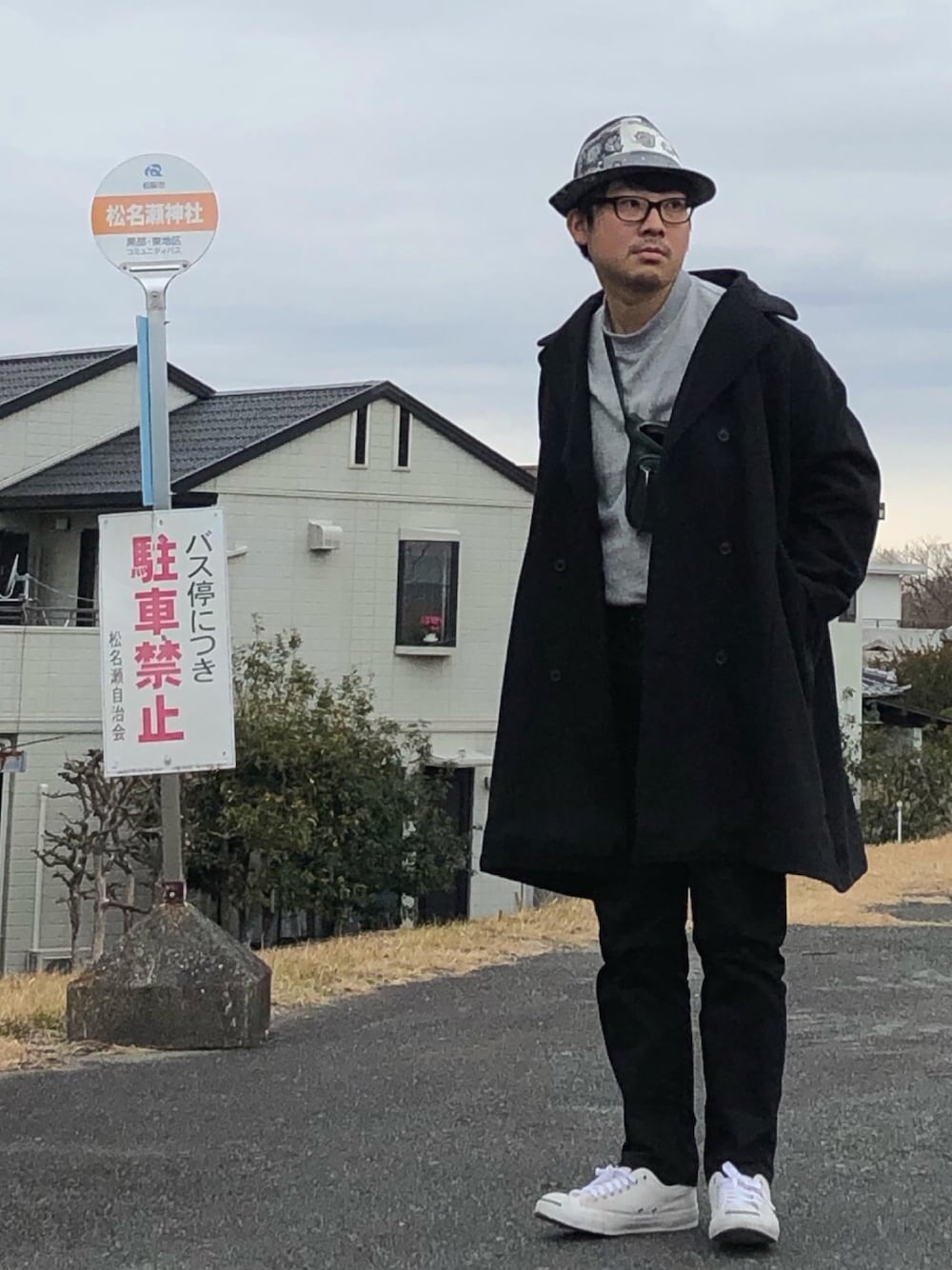 バス停と、ぼく。 このコートUMIさんという方が着てたので真似した。 あ、今年もよろしくです。