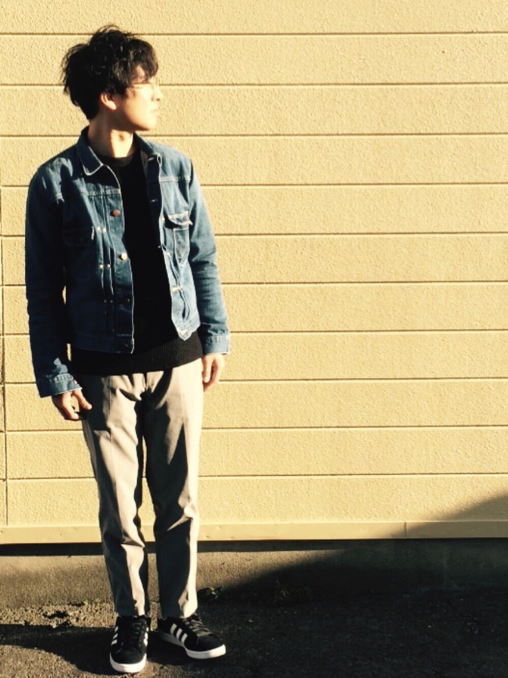 グレーのスラックスをベースに遊び心を Gジャンと髪型でね。 大人っぽく。を意識しました