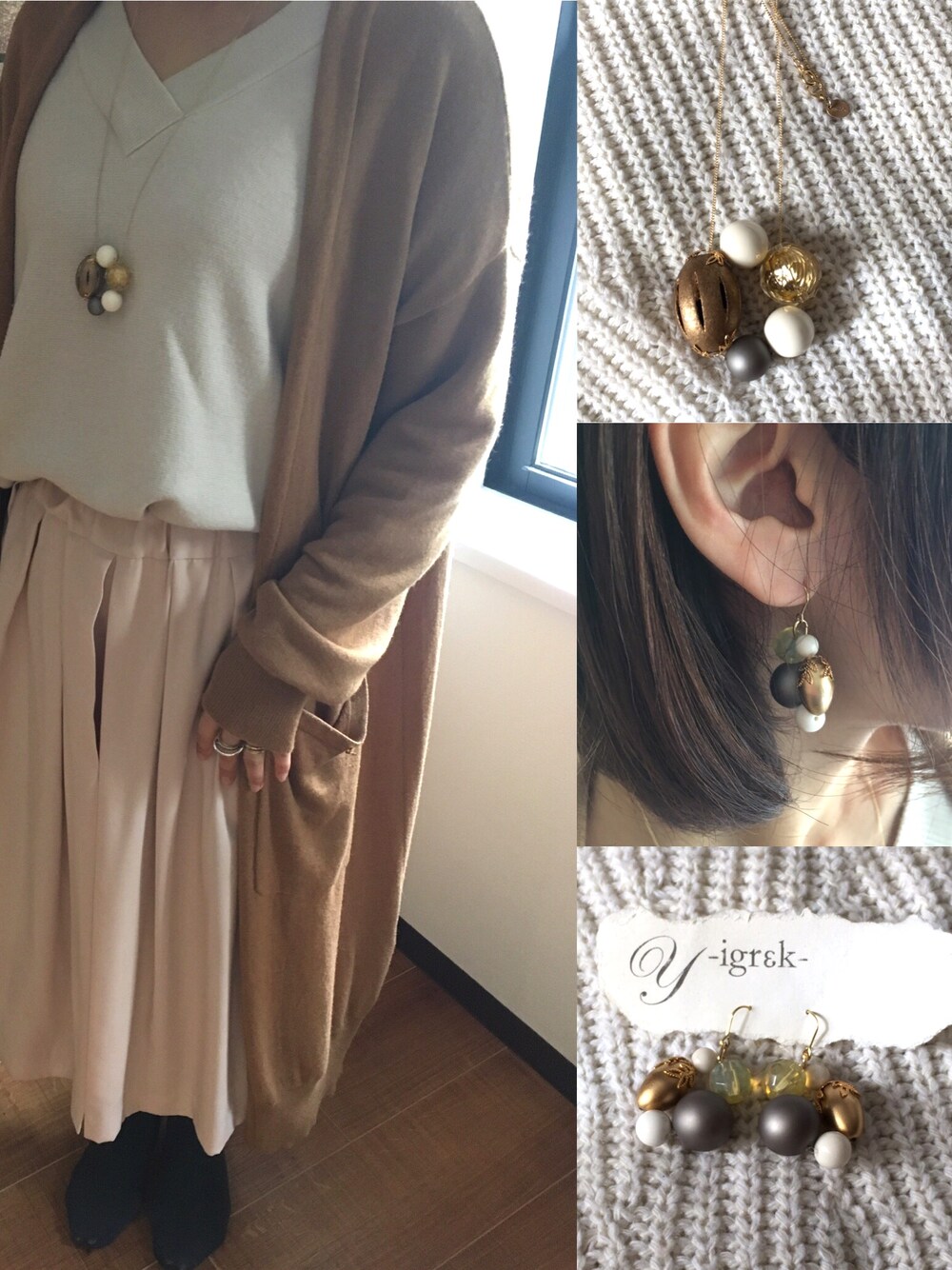 大きめのウッドビーズを中心に、ボリュームのあるロングネックレスと、おそろいのピアスのセットです。 igrek-イグレック は、ハンドメイドのオリジナルジュエリーブランドです。 丁寧に1つ1つ制作しているので数に限りがあります。 こちらの商品は受注生産で承っています。