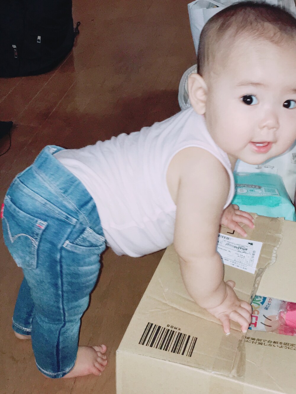 田舎でつかまり立ち しかもリーバイスジーンズに下着とゆうダサい。