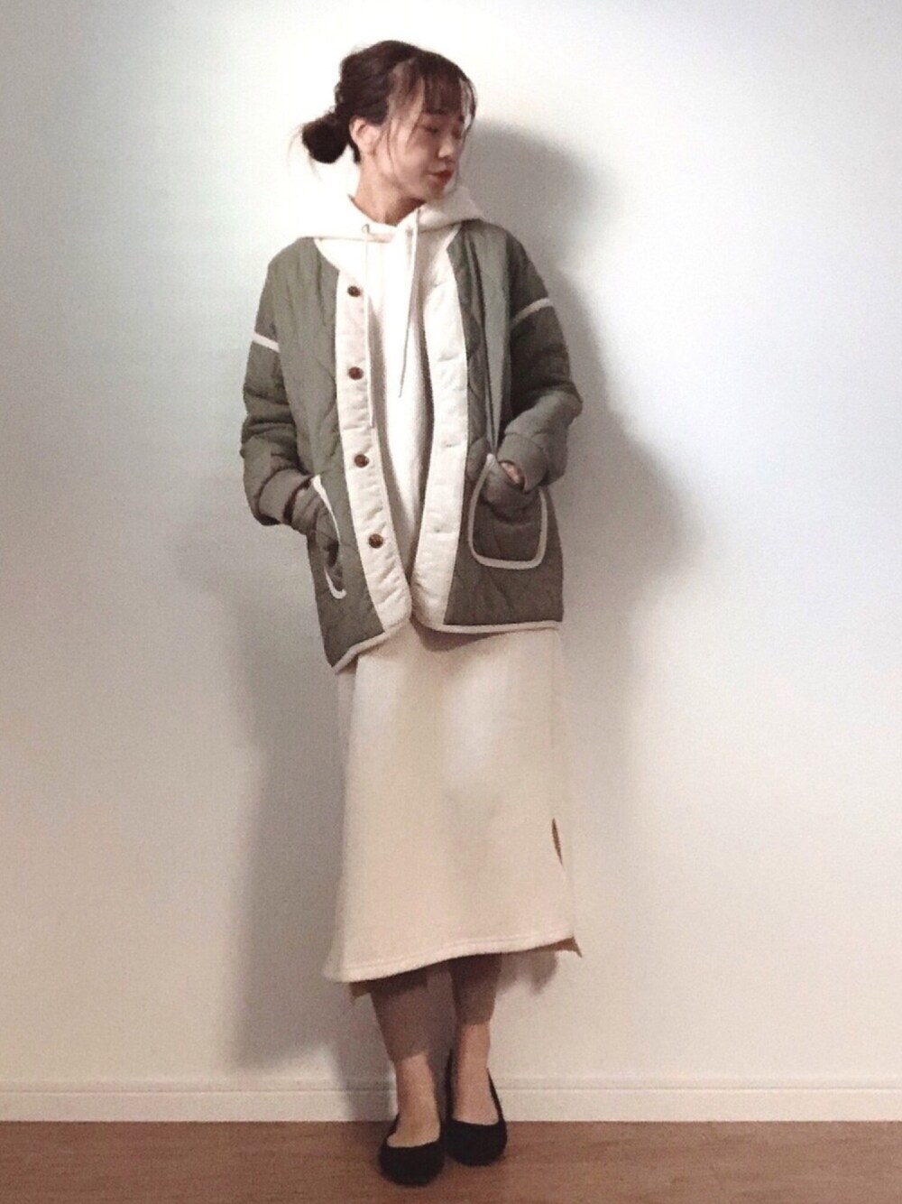 前々回も前回もたくさんのいいねやお気に入りありがとうございます♡ 嬉しいです♡♡ パーカーワンピだけじゃ寒くてキルティングのアウターon★パイピングが可愛い♡ 地域によるけど今の時期は厚めのニットを1枚で着るか軽めのouterを着るかな感じ! ちなみに私の地域は関西です⑅◡̈*