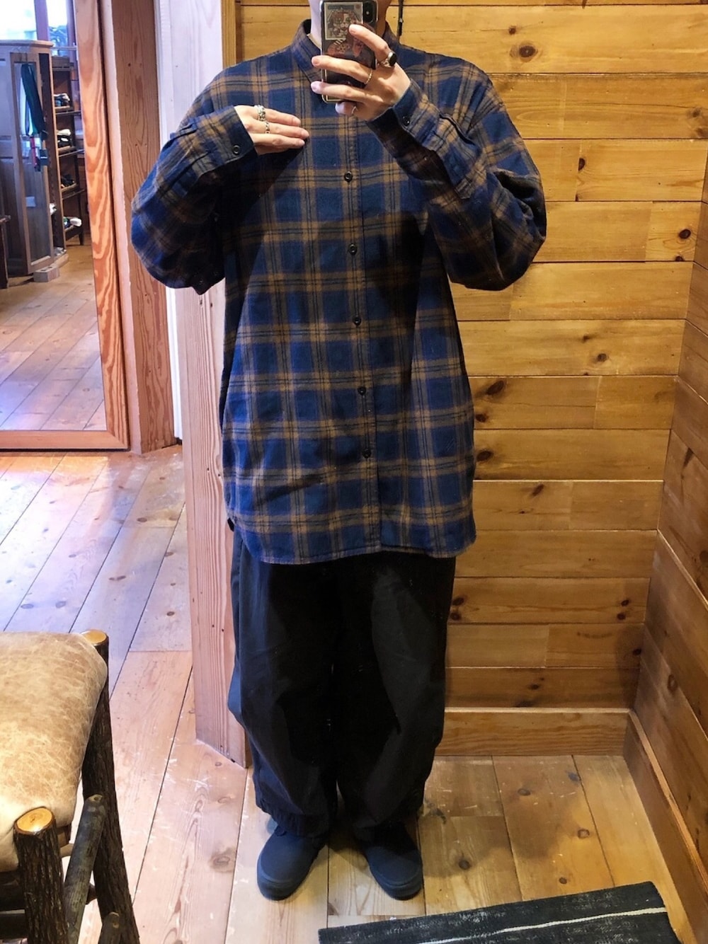 シャツは飛びっきり大きく着るのが好きです🌐 パンツはneedlesのヒザデルパンツで全体的にゆったりした感じにしました!