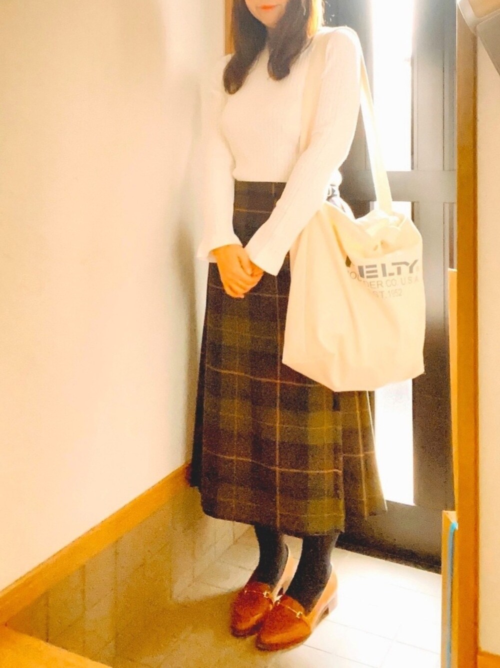 おはようございます😊 6日ぶりの出勤です。こんなにお休みしたのは年末年始以来笑 今日は昔でゆうアイビーファッション😆 大好きなタータンチェックです。 秋っぽい🐰🍁