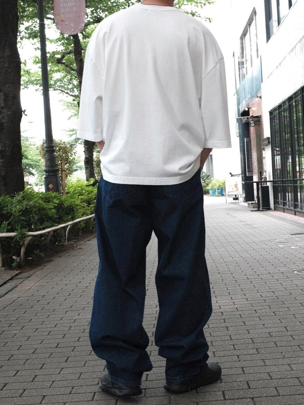 白Tにブルーデニムっていうちょっと恥ずかしい位の王道スタイルが新鮮。全体的にルーズなシルエットを選べば普通だなぁにならずに楽しいかと!