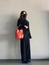 休日なのでゆるっとニットセットアップを着ました。お腹のところが短くなりつつもお腹をうまくカバーしてくれる&お尻もすっぽり覆ってくれてしっかり体型補正してくれます。祖母のお下がりのカバンを差し色に使用しました。