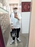 ゆったりしたデザインの白のロンTに白の腕時計とTODAYFULのスモーキーブルーのタンクトップを合わせて、爽やかにシンプルに😊
