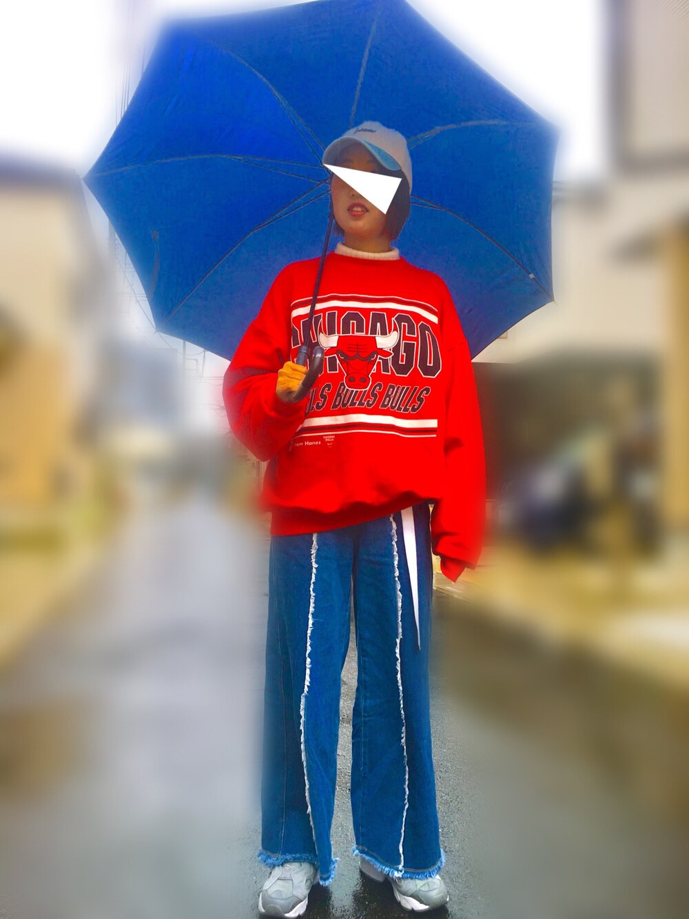ワイドパンツに大きめのトレーナーだけど、ちょっとスニーカーが厚底だから、 ボテボテしたイメージは無くなる💭💡
