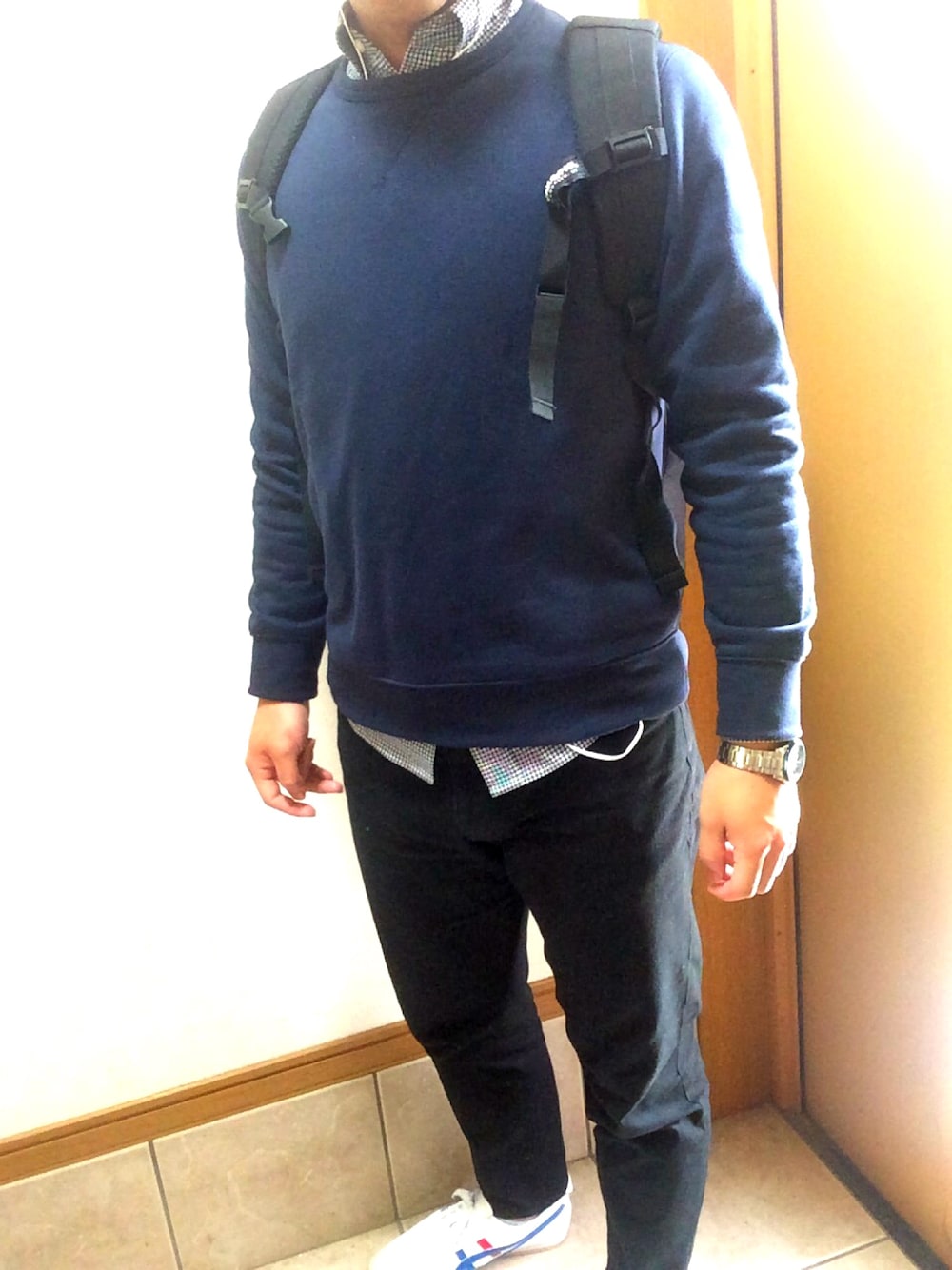 今日は寒いから、トレーナーの下にギンガムチェックのシャツきて、ちょいレイヤードしてみた。 首元止めた方がいいか、開けた方がいいかわからんから放置(笑) ひさしぶりにオニツカタイガー履いたけどいいね😎🐯