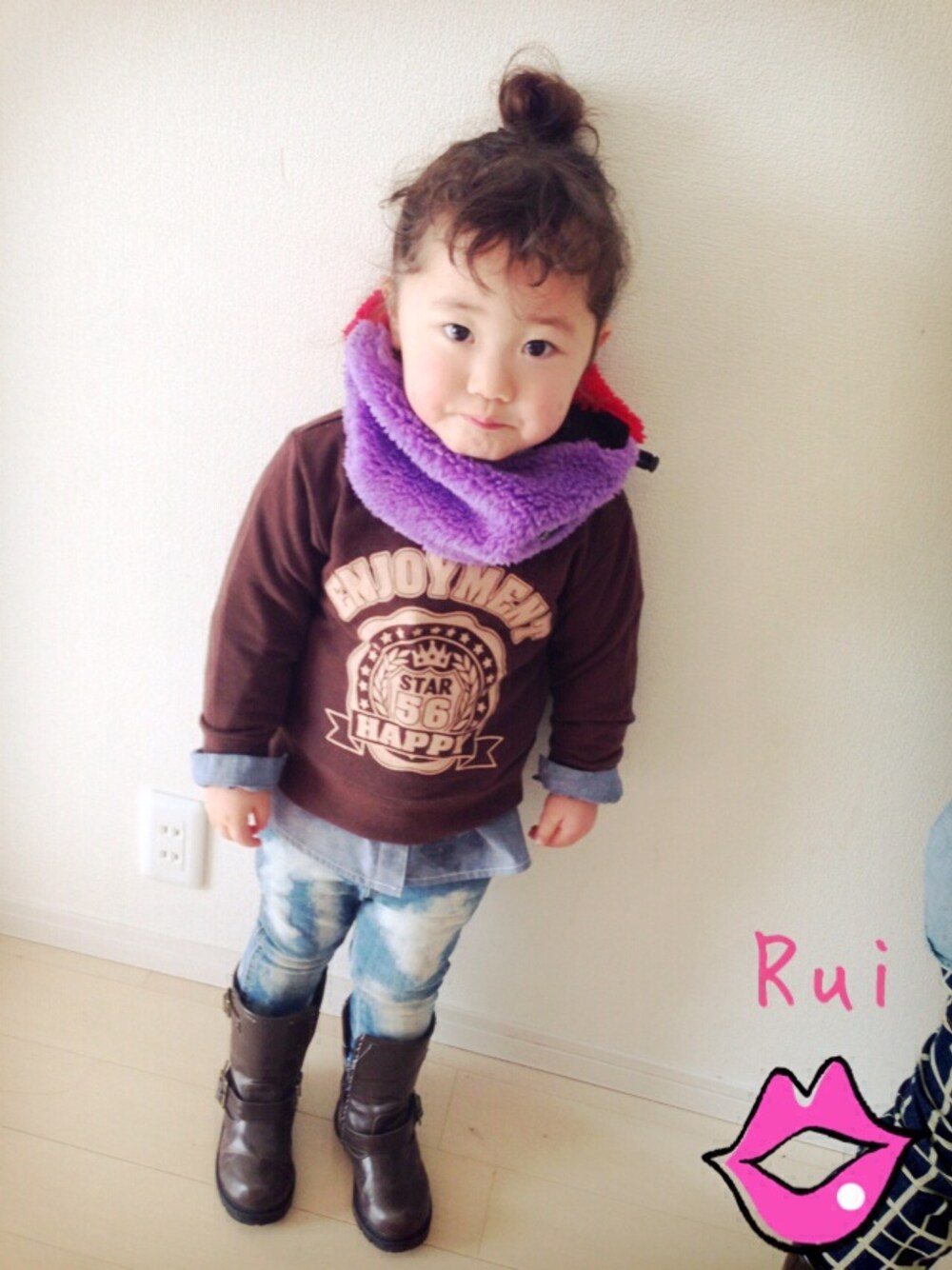 デニムonデニム ネックウォーマーは兄とお揃い♡ 娘は、かなりのぽっちゃりさんです