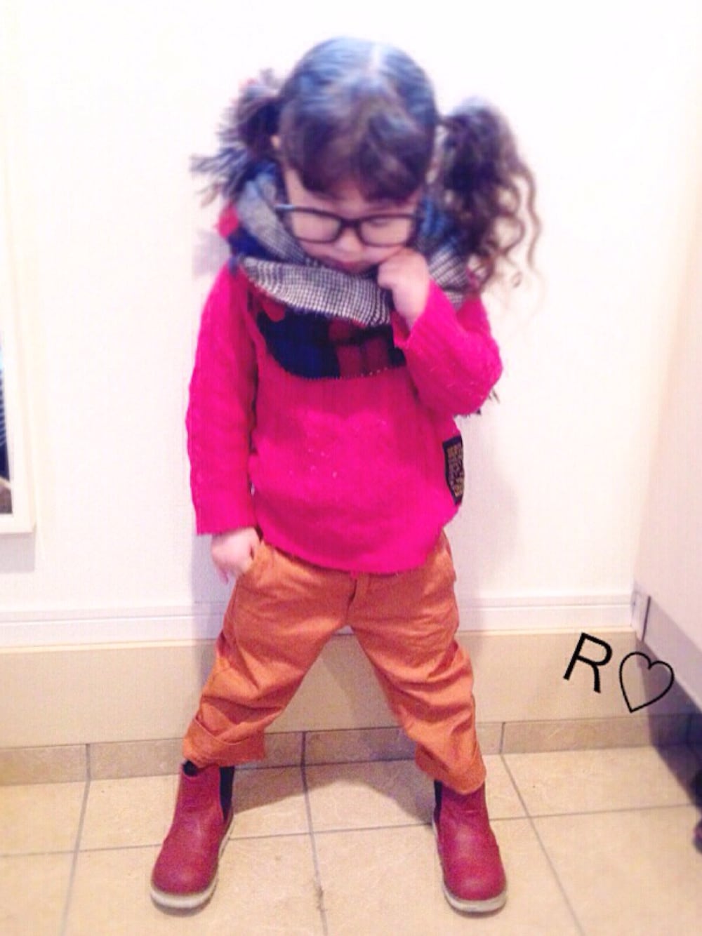 娘コーデ♡ カジュアル! ピンクニット3年目。そろそろサイズアウトです💦