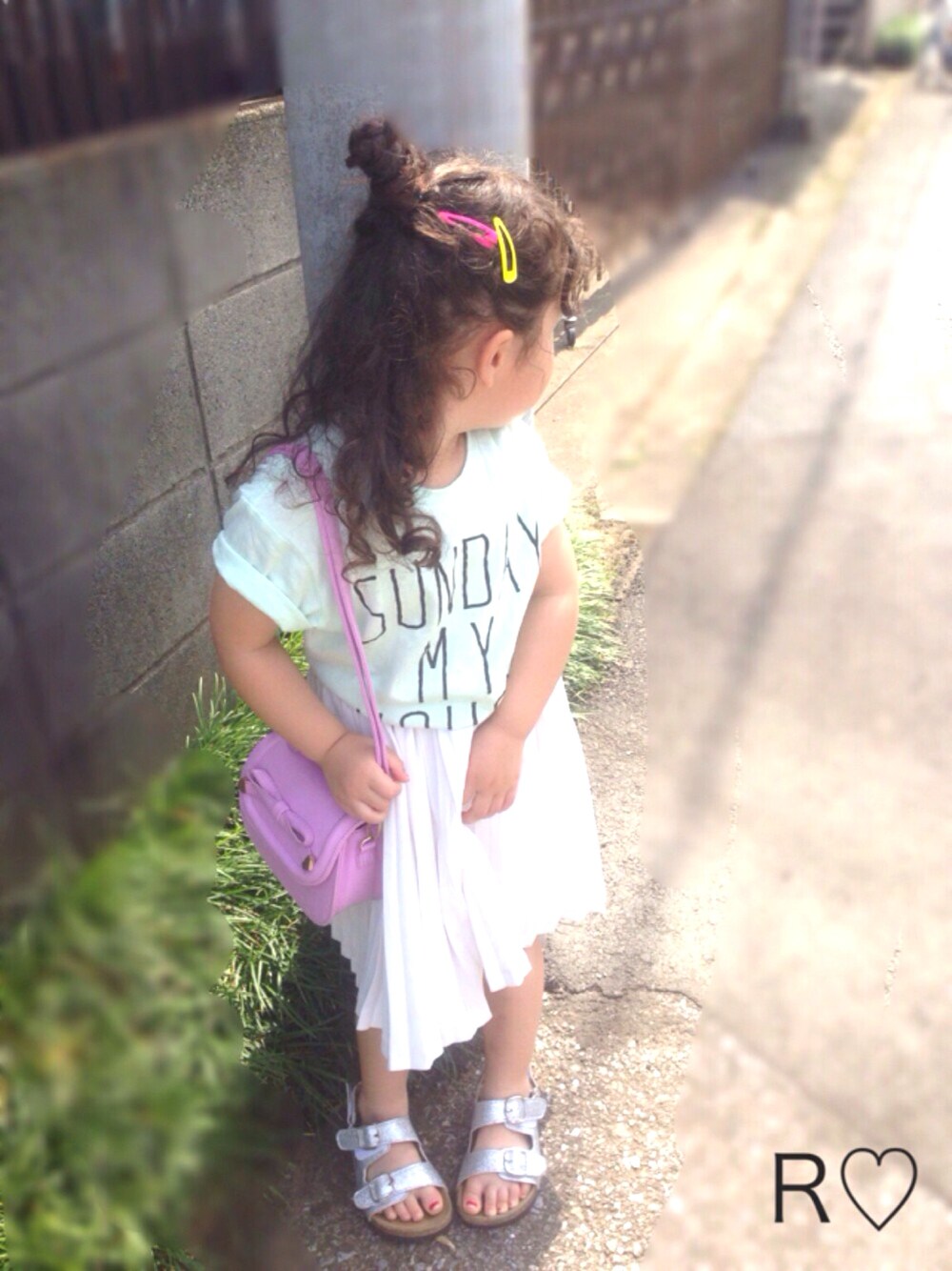 お揃いTシャツでコーデ♡ ヘアはハーフアップ♡