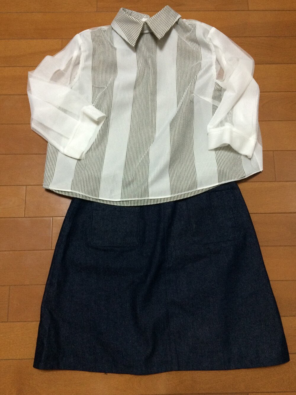 シースルーストライプトップス haushca デニムスカート 韓国 セレクトショップhaushcaと韓国ファッション好きです(・ω・)ノ