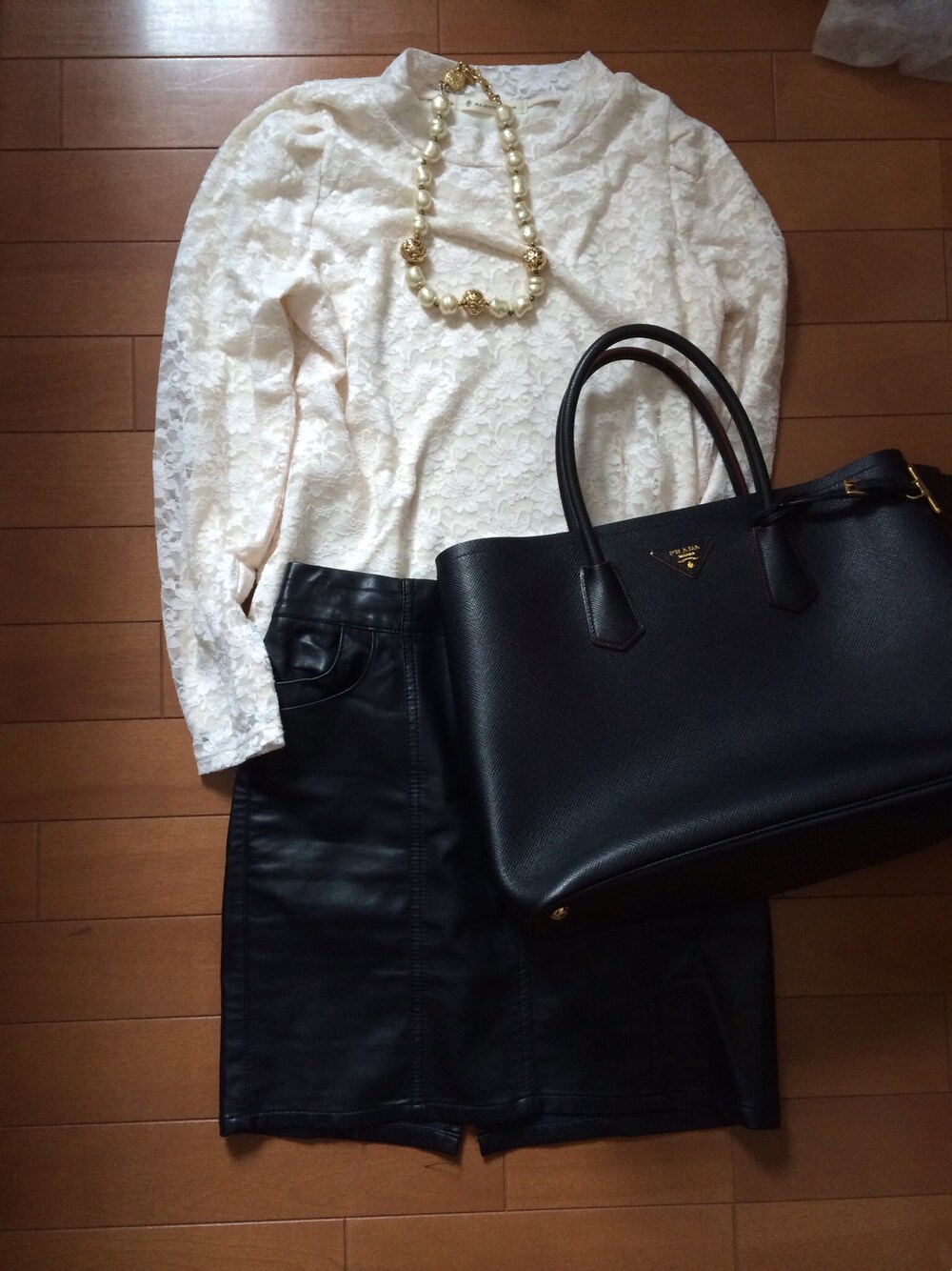 甘辛ミックススタイル! ネックレスはサンローラン、 鞄はプラダでプチプラを高見えに!