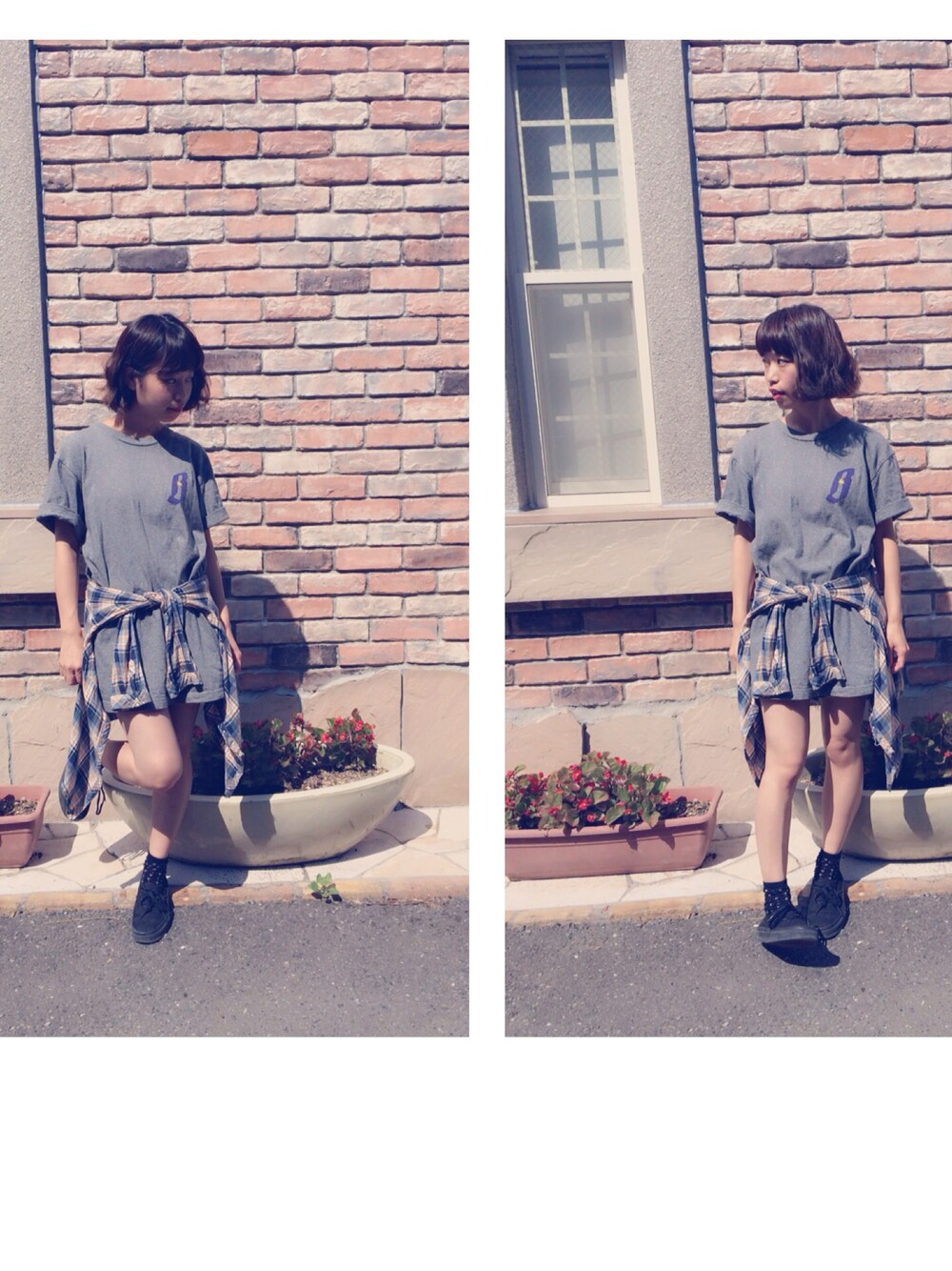 Tシャツワンピみたいなコーデ♪♪ 動きやすくて夜はチェクシャツを着て 寒さ対策もばっちり♪٩(´ᵕ`๑)۶⁾⁾