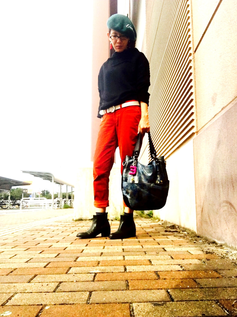 昨年、ゲットした、パンツ!なんと今年のテラコッタ色が流行してるので、久しぶりに履いてみました!三色のカーキとブラックとテラコッタでコーデしてみました❤️ショートブーツはカーキです ポイントに大好きなバルコスの鞄で仕上げました(~_~;)