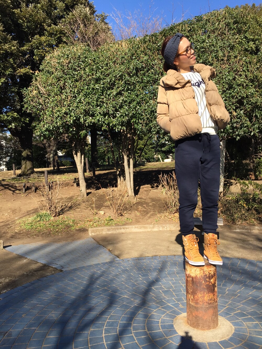 しつこい程、最近はこのヘアバンド してるなぁ〜w ひとつ結びもカチューシャとかニットバンドとかしちゃえば オシャレに見えると思ってますw 天気が良いので 公園へ〜スタイルです。