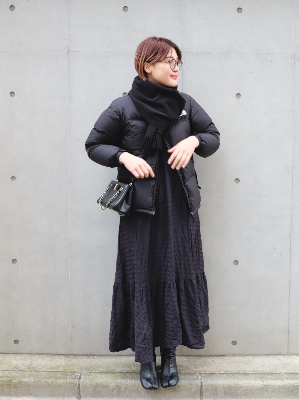 たまにはジャストサイズで オールブラックコーデ♥ THE NORTH FACEのヌプシは キッズの150サイズです◎